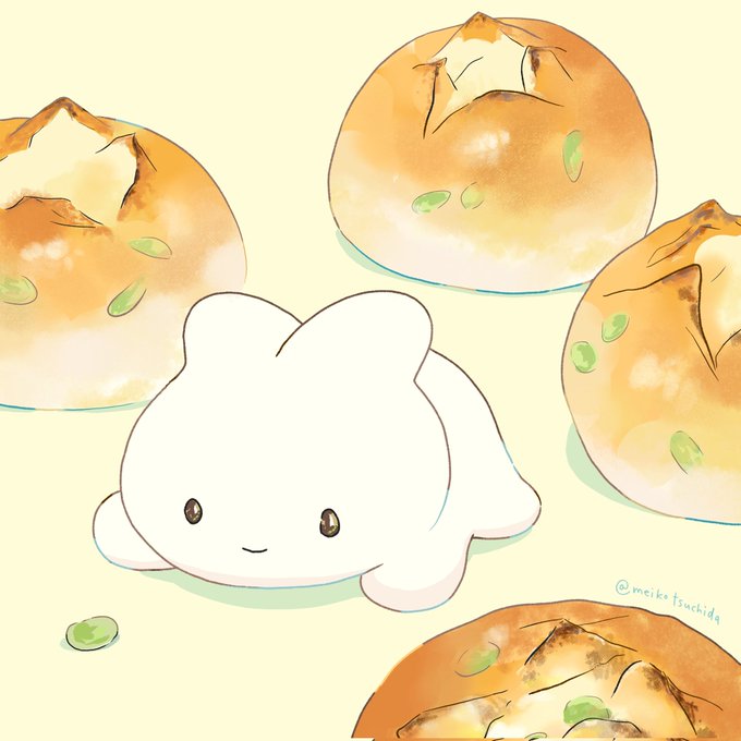 枝豆パンから落っこちた枝豆とうさぎちゃん #イラスト #みんなで楽しむTwitter展覧会