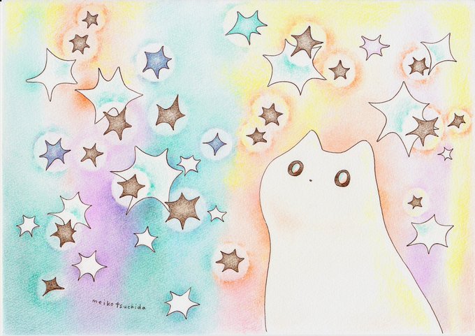 ネコキラキラ✨ #色鉛筆 #イラスト