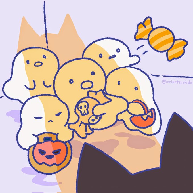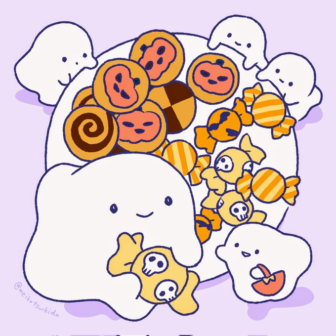 11 150 ハロウィンお菓子をもらいに来たおばけたち #イラスト #ハロウィンイラスト展示会2021 21/10/22 12:27