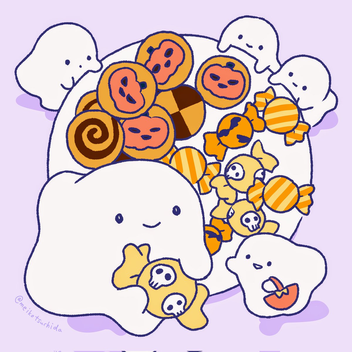 ハロウィンお菓子をもらいに来たおばけたち #イラスト #ハロウィンイラスト展示会2021