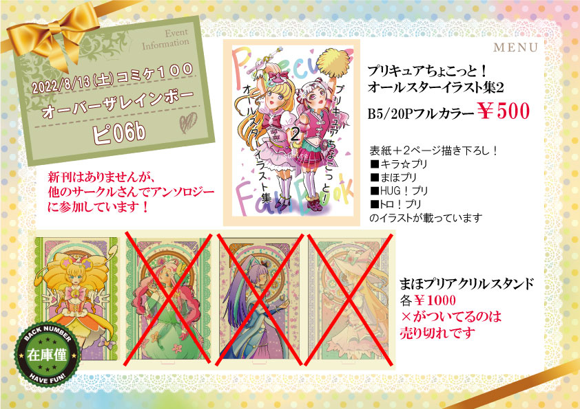 あなたのサークル「オーバーザレインボー」は、コミックマーケット101で「金曜日東地区 "モ " 48b」に配置されました!コミケWebカタログにてスペース配置場所公開中です! webcatalog.circle.ms/Circle/Map/168… #C101WebCatalog