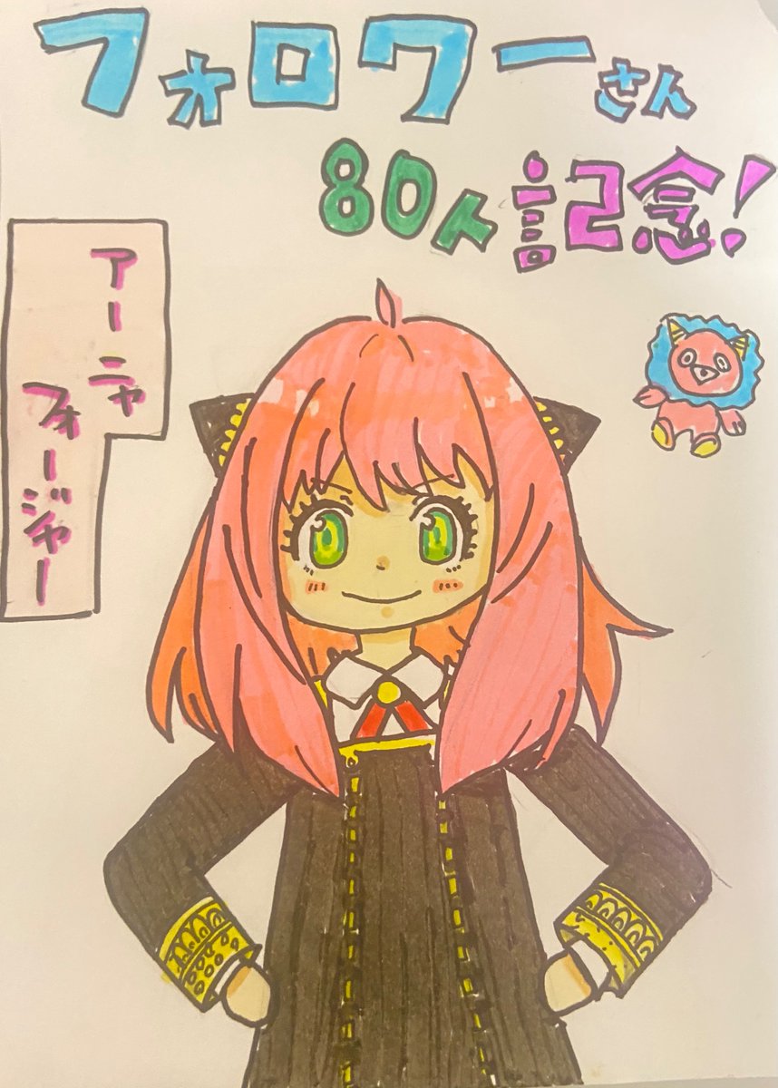 1 13 フォロワーさんが80人いったということでアーニャを描きました!可愛くかけたんじゃないでしょうか?🥜 #アーニャ #絵 #イラスト #アナログ 23/04/06 20:48