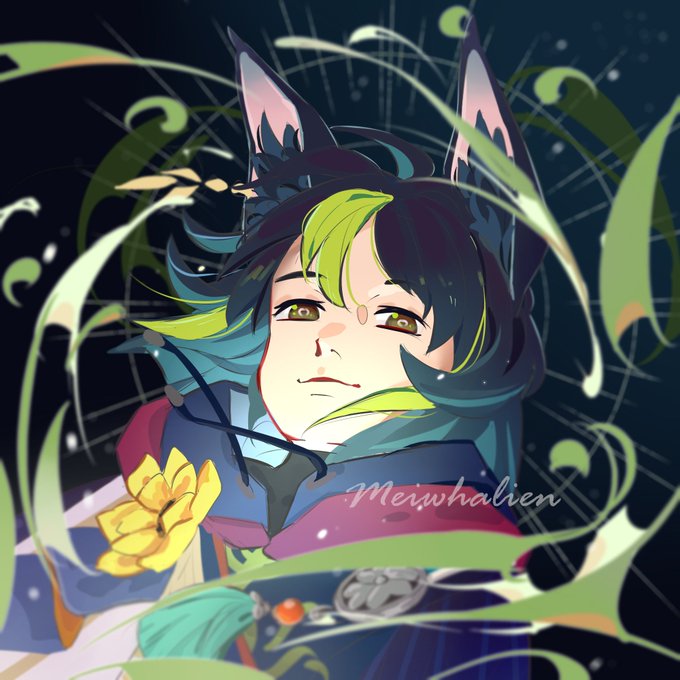 #Tighnari Lovely! 2 hours doodle Doodle tapi bukan doodle I dont do line art cuz my brain wants to draw faster I made this while working on other projects Ugh Im in love with him! Fluffy ears, fav color palette 🌿🍃🌻😭👌🏻 #genshinimpactfanart #tighnarifanart #Genshinfanart