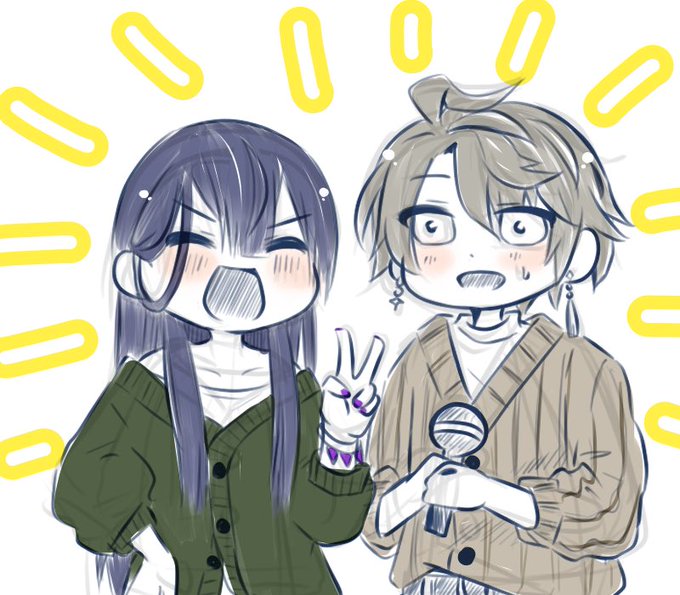 19 193 まねきねこコラボのいだはるの服装がおながのと似てる気がしてめっちゃ好き(白シャツ+だぼだぼニット) #桜魔の土産 #上弦画 #長尾百景 #描いた晴 23/06/01 20:35