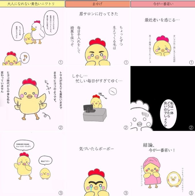 🐥大人になれない黄色いニワトリ🐓 インスタの枠?を利用して、過去絵を切り貼りして3コマ漫画にしてみました✨ instagram.com/otonaninarenai… #イラスト #ゆるい絵 #漫画が読めるハッシュタグ