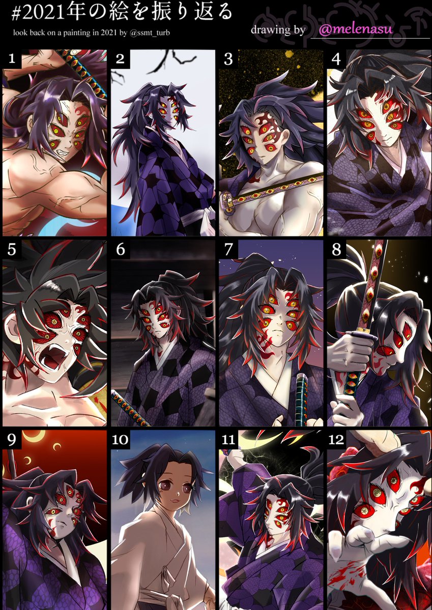 #2020年自分が選ぶ今年の4枚 #鬼滅の刃イラスト いつも見てくださる皆さんありがとう 今年はほとんど黒死牟でした!来年は頑張ってたくさん描きたい…!