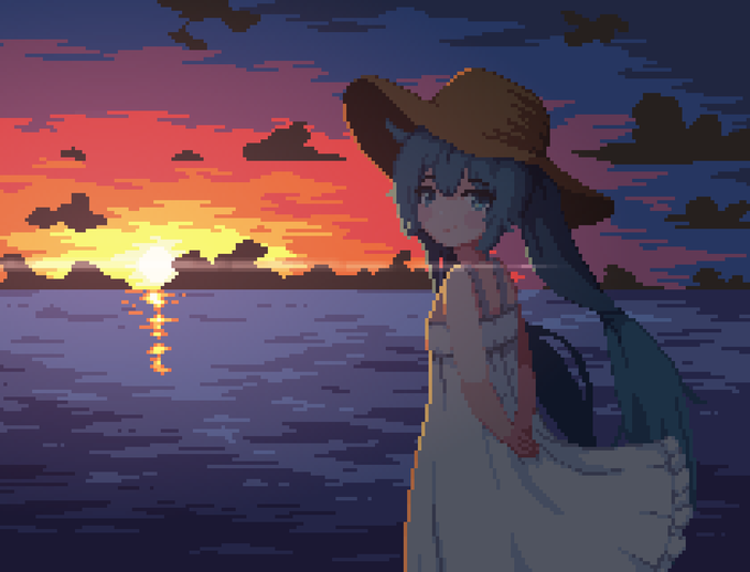 21 99 🌅🌊 #pixelart #ドット絵 23/07/30 15:57