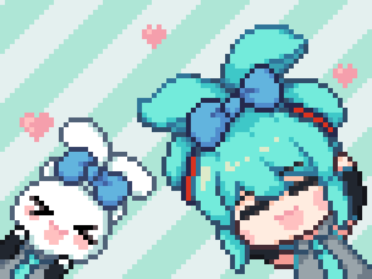 18 85 cinnamoroll miku #pixelart #ドット絵 22/08/03 20:35