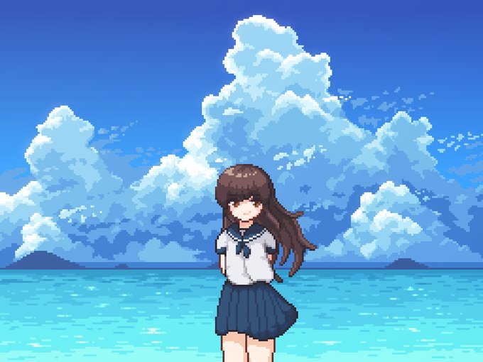 76 415 夏の海☁️🌊 #pixelart #ドット絵 22/08/15 00:00