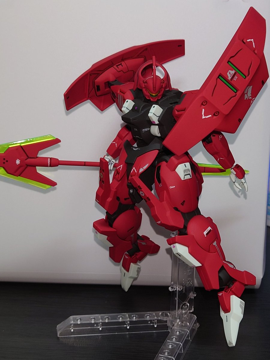 #ガンプラの画像貼るとRTされると聞いて #機動戦士ガンダムOO #ガンダムヴァーチェ ガンダムヴァーチェ(トランザムモード)グロスインジェクションバージョン 完成! 折角の特殊カラーなのでスミ入れを最低限に抑えトップコートで光沢処理を施してみました! ……写真だと光沢解りづらいですね(汗)