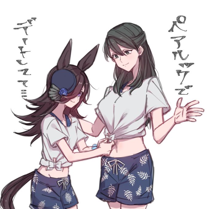 ライスとお姉さま…ペアルックでおさんぽという名の海辺デートしててほしい… (トレ♀お顔ありです…)