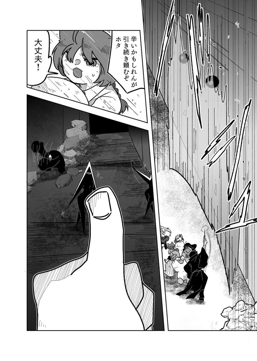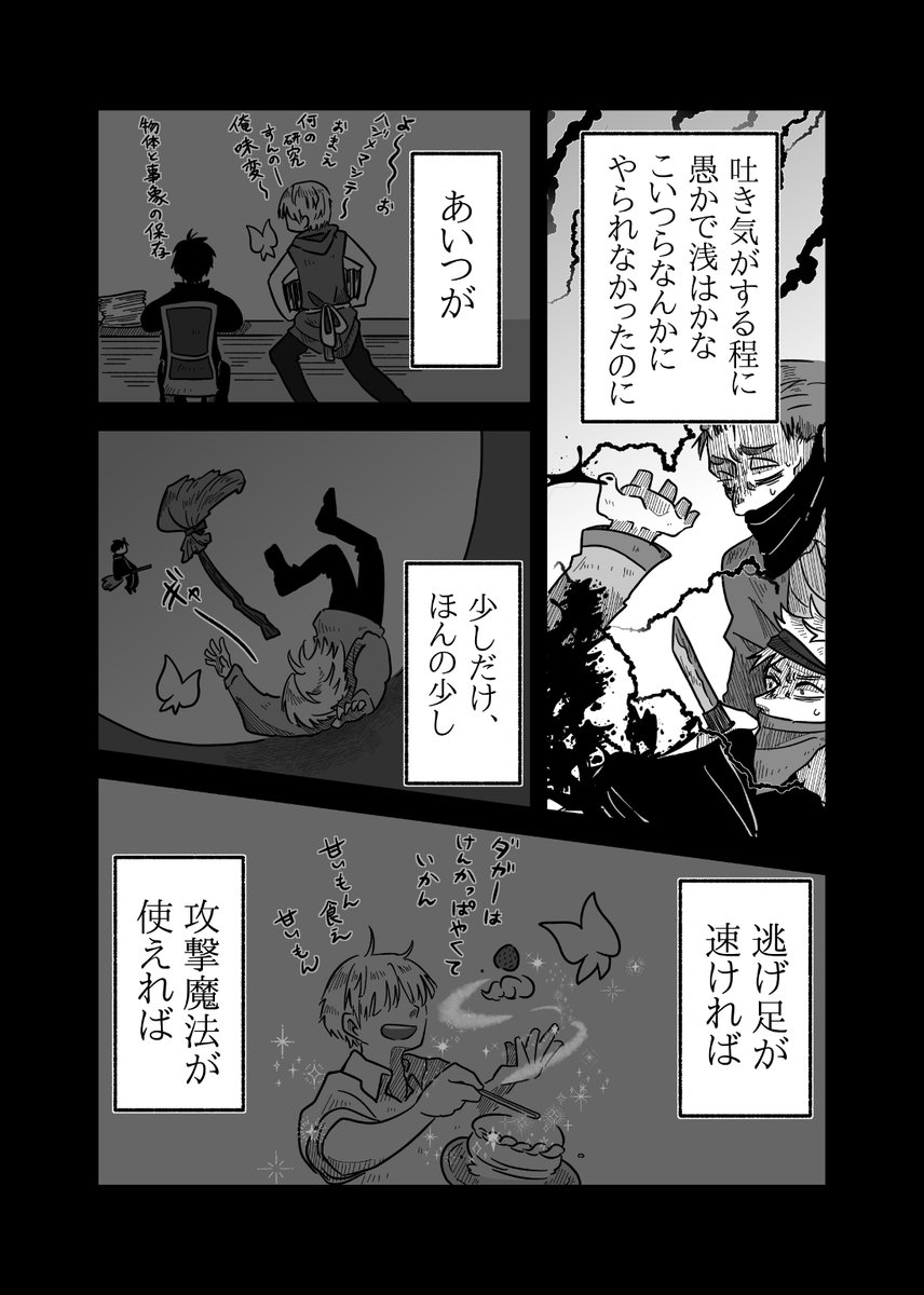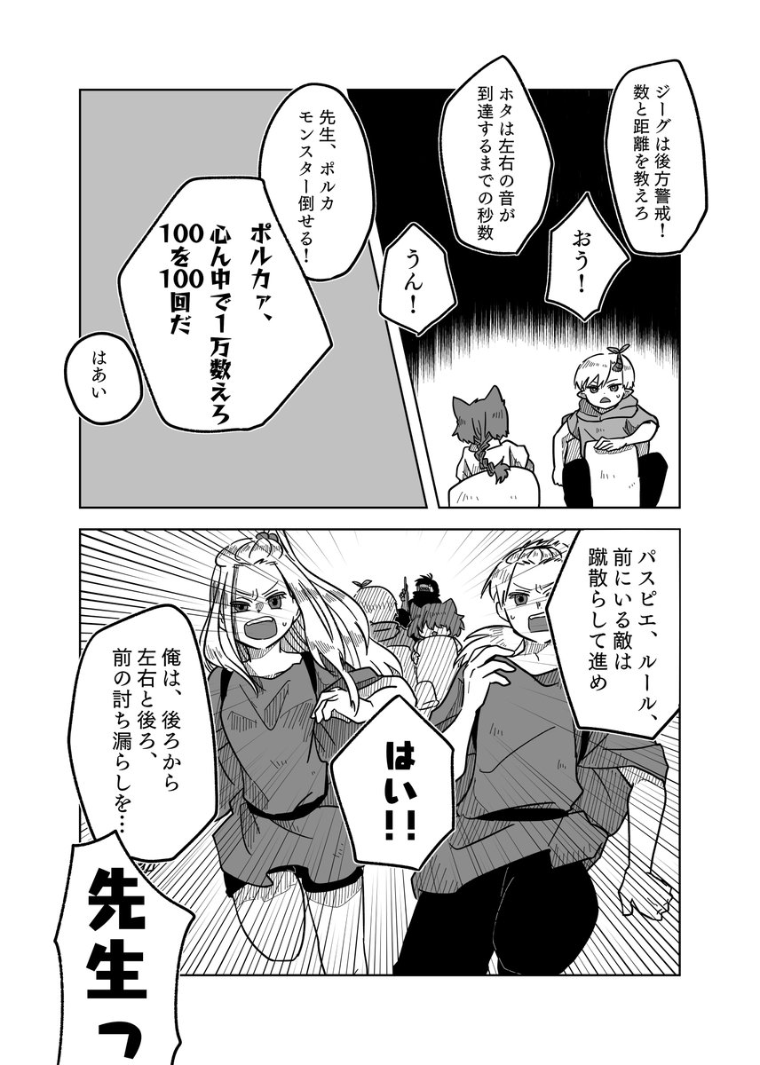 #pixivファンタジアSOZ 【PFSOZ】緊急事態の陣形【アラディア院】 - 横山チヨ - pixiv pixiv.net/artworks/10370… 最終章宣1ページと抜粋版。 絶対子どもに何か言う顔じゃない、キレてるダガーと、シリアスシーンで100を100回数えるポルカ