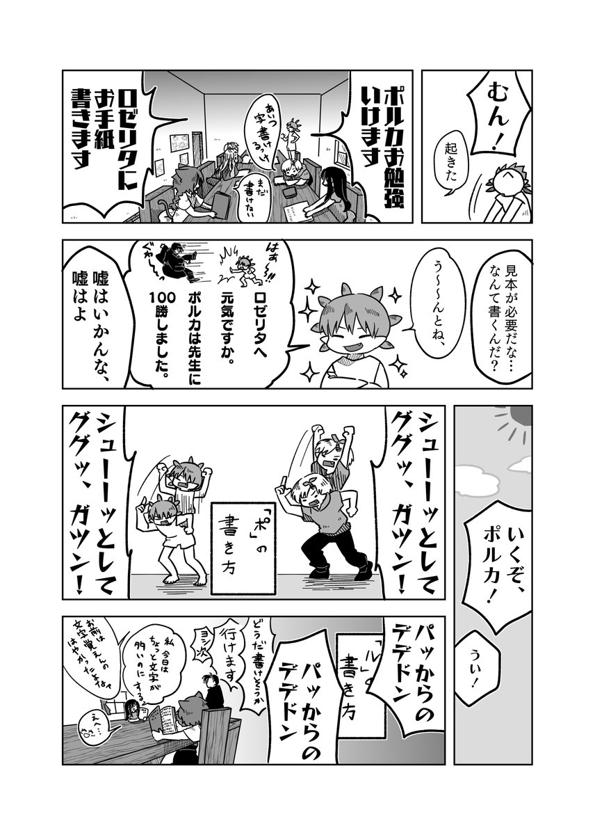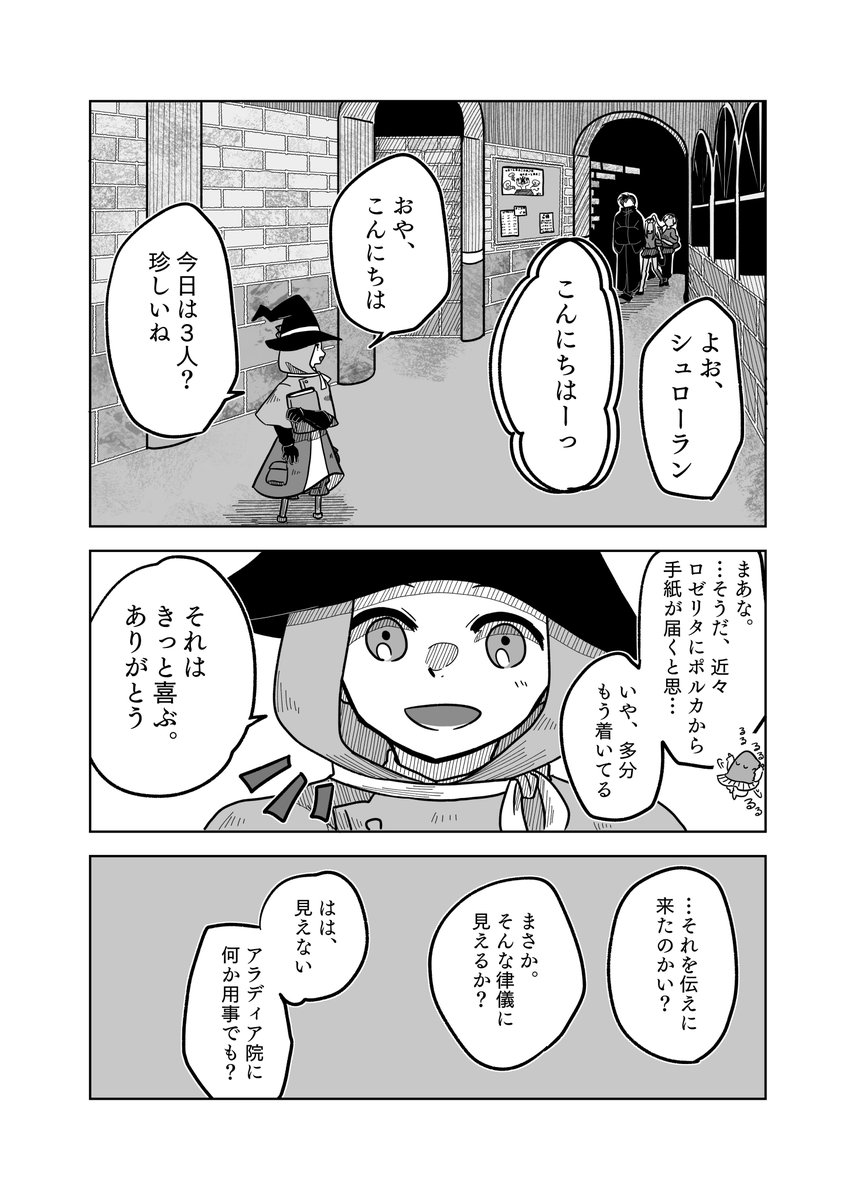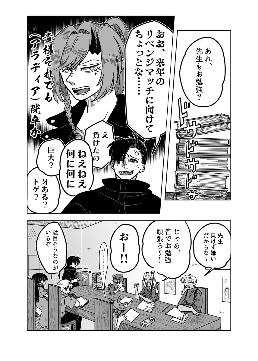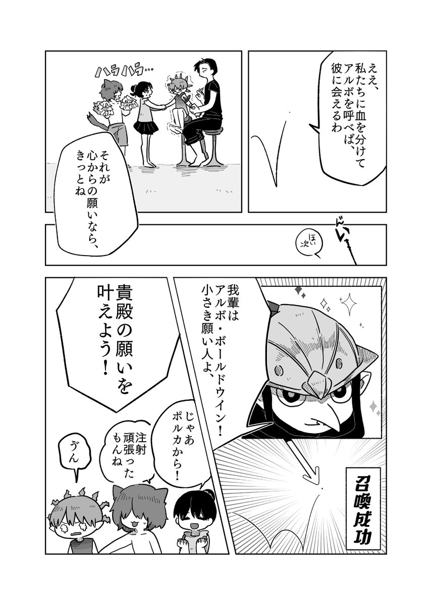 #pixivファンタジアSOZ 【PFSOZ】緊急事態の陣形【アラディア院】 - 横山チヨ - pixiv pixiv.net/artworks/10370… 最終章宣1ページと抜粋版。 絶対子どもに何か言う顔じゃない、キレてるダガーと、シリアスシーンで100を100回数えるポルカ