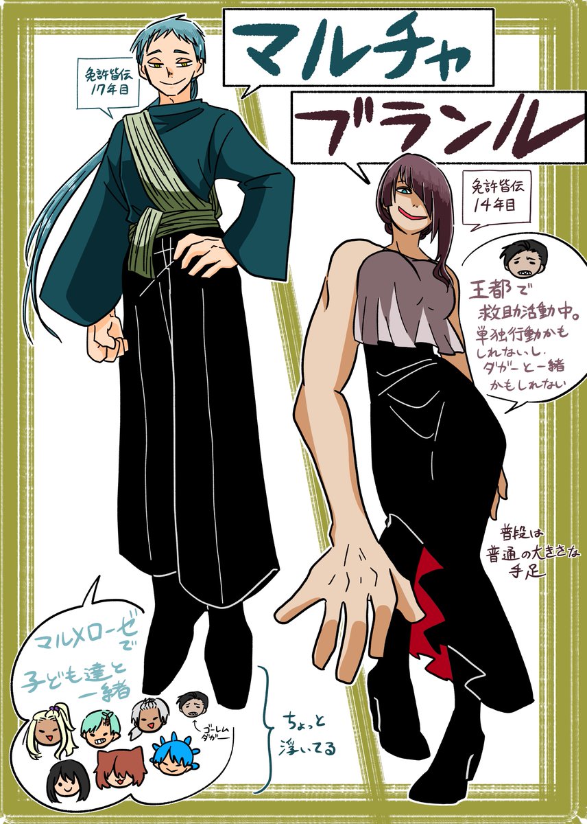 #pixivファンタジアSOZ 【PFSOZ】マルチャとブランル【アラディア院】 - 横山チヨ - pixiv pixiv.net/artworks/10379… ダガー単身?王都入りです! あとなんかまた増えた子ども?達です!