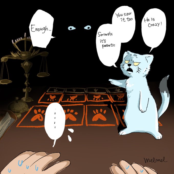 このツイートのやつ描いてたつもりだったけど、いつのまにかコントラストガッツリになってたので描き直します〜!普段描かない絵楽しいね #inscryption #inscryptionfanart #p03 twitter.com/melmel_usagi/s…
