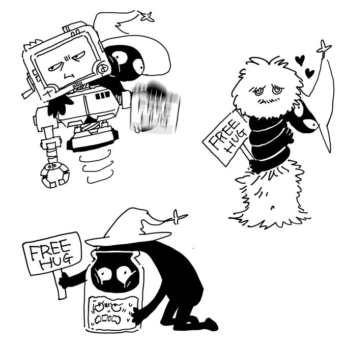 ネタを貰いました!ありがとうございます!! 私が描くと全く可愛くない孤独くん♡ めんだこさんも勝手に描きました!!!!!!!(ごめんなさい) twitter.com/mendacofee/sta…