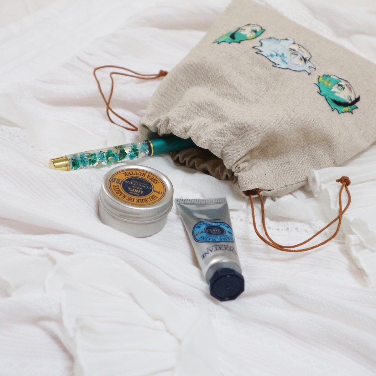 普段使いしやすい シンプルなワンポイント刺繍です! バッグの中に推しを忍ばせています こっそリーチ! #ツイステ #ツイステファンアート #ツイステ手芸部 #ツイステッドワンダーランド #twst #twst手芸部 #フロイド