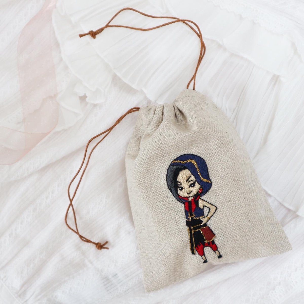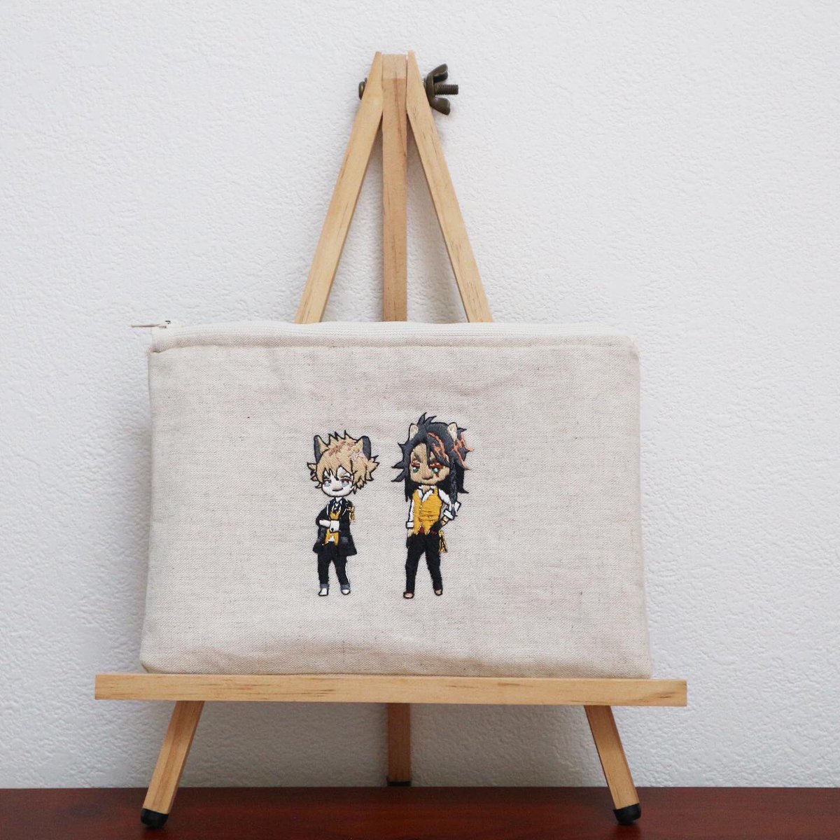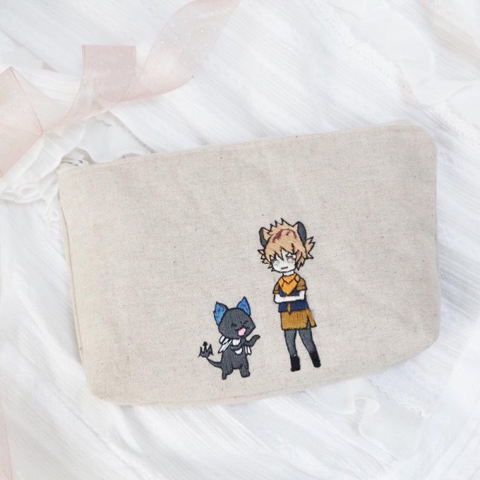 ラギーとレオナのリネンポーチ✨✨ 満足のいく作品が仕上がりました☺️ ※販売はしておりません #ツイステ #ツイステッドワンダーランド #ツイステファンアート #ツイステ手芸部 #twst #ディズニー #ラギー #レオナ