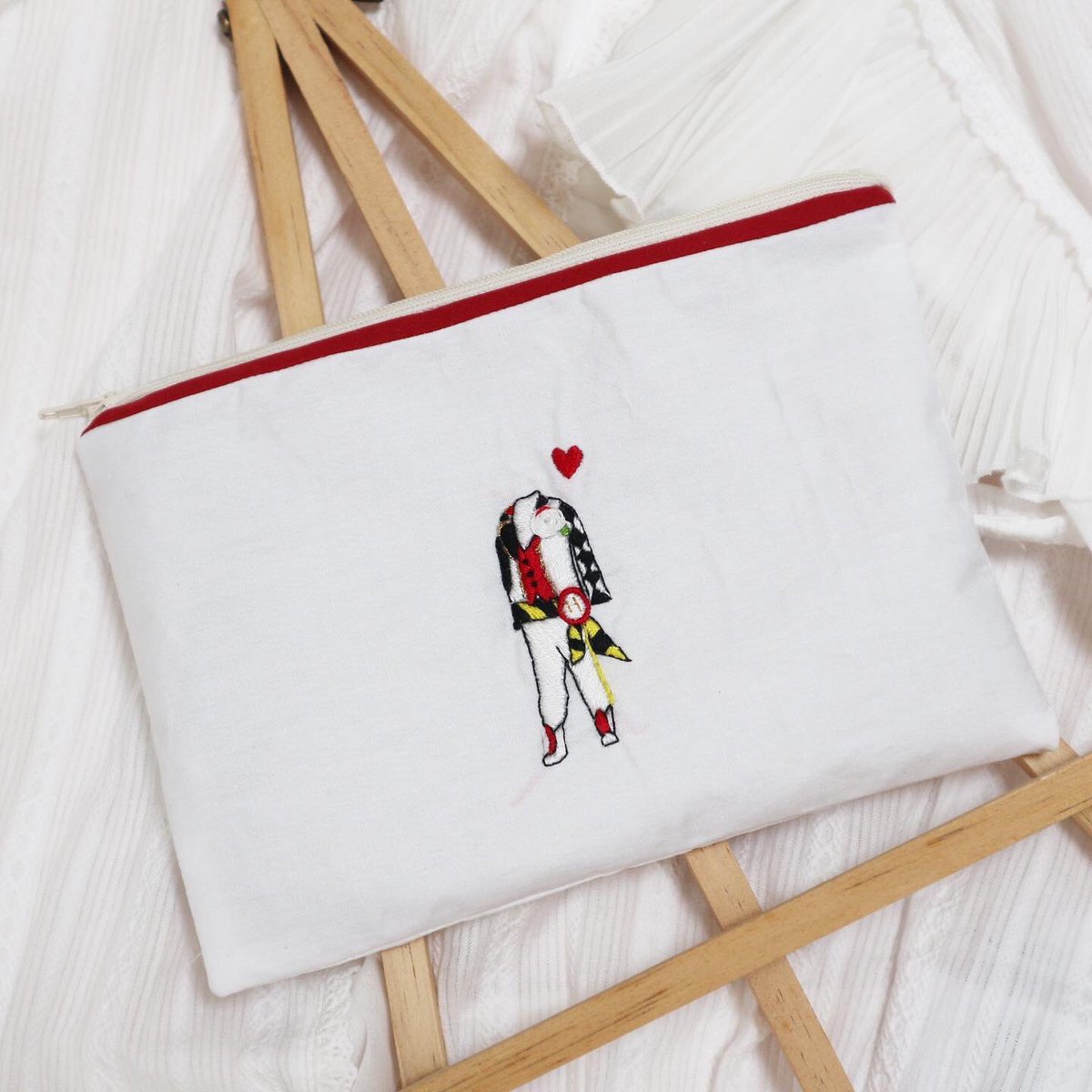 バイアステープも赤に❤️ 金の刺繍が映えていい感じ〜 ハーツラビュル寮長 リドル・ローズハート♥️♣️ #ツイステ #ツイステファンアート #ツイステッドワンダーランド #ツイステ手芸部 #twst #twstファンアート #リドル・ローズハート #リドル #ディズニー