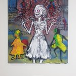 自分の描いた絵(1枚目)をAIに学習させた生成結果を参考に自分で描いて(2枚目)またそれを学習させて生成結果を自分で描いた孫作品(3枚目)を明日から多摩展に出します 作品の子孫が世代を経てどう変化していくのか楽しみなので今後も継続していきたい twitter.com/i/web/status/1…