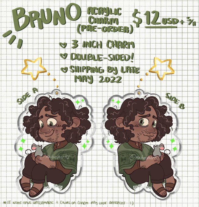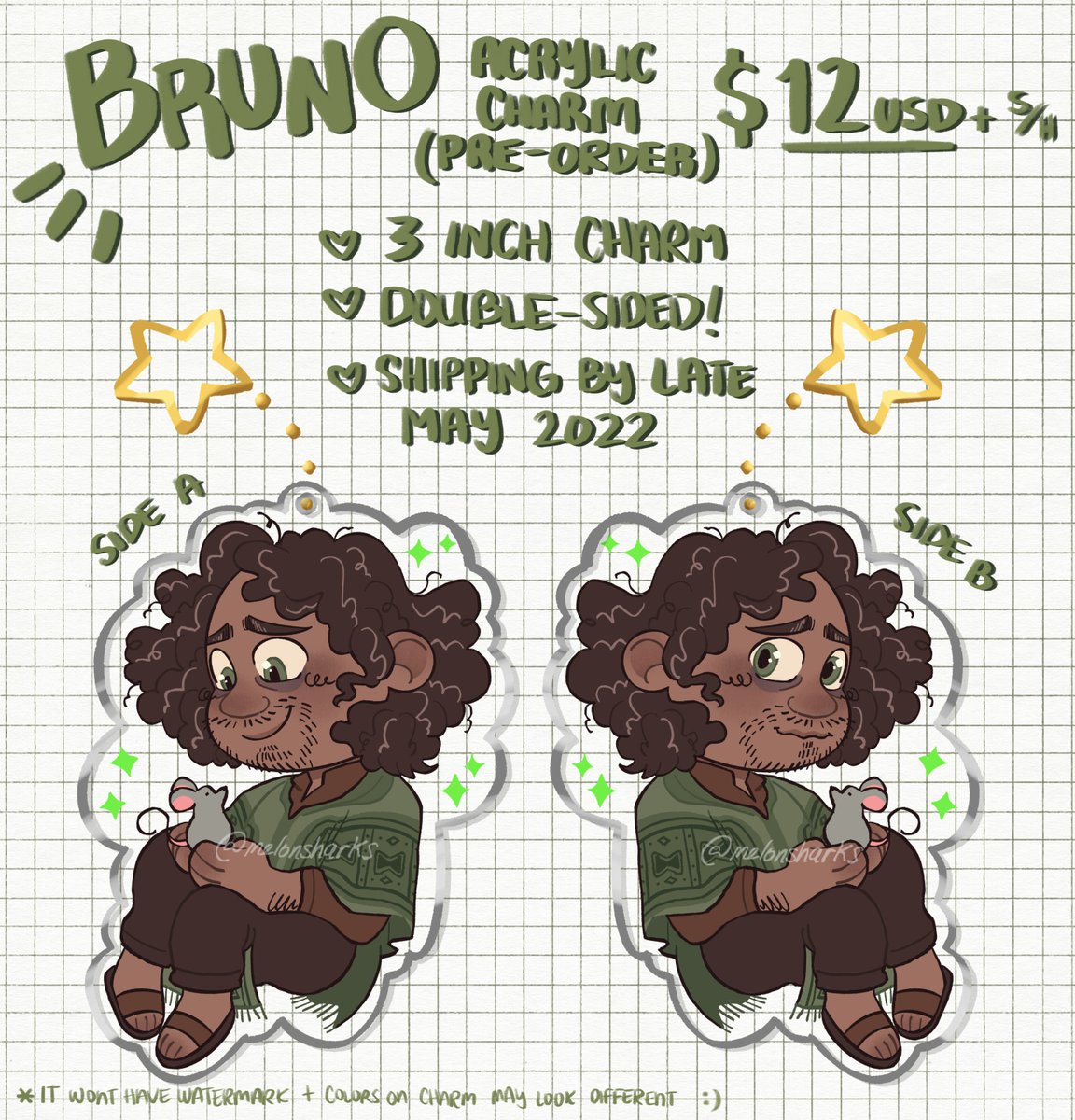 I'm putting some Bruno charms up for pre-order! 💚🐀Little rat man to carry around in your pocket. #encanto #encantofanart #brunomadrigal Worldwide shipping is available. Check out the listing for more details! 💚Shop here: melonsharks.bigcartel.com