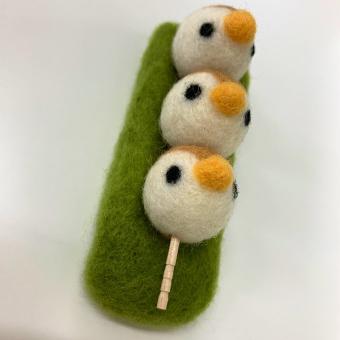 0 4 仕事で作ったスズメのみたらし団子とウグイスのウグイス餅団子☝🏻 羊毛フェルトをきめ細かく刺す技術はあると思うのですが迅速に作る技術と発想力が乏しいのでもっと頑張らねば💪🏻 #羊毛フェルト #ニードルフェルト 21/03/21 20:13