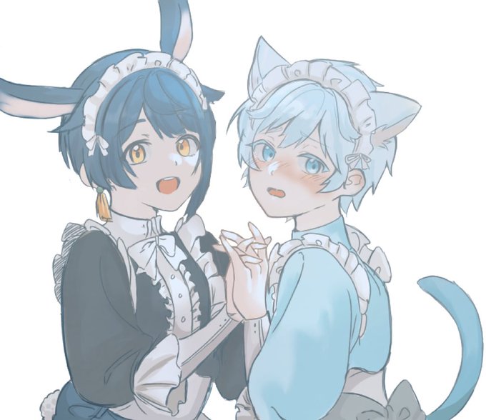 メイド服あきちゃんゆんゆん 🐰🐱(トレス素材使用) #原神イラスト #Chongyun #Xingqiu