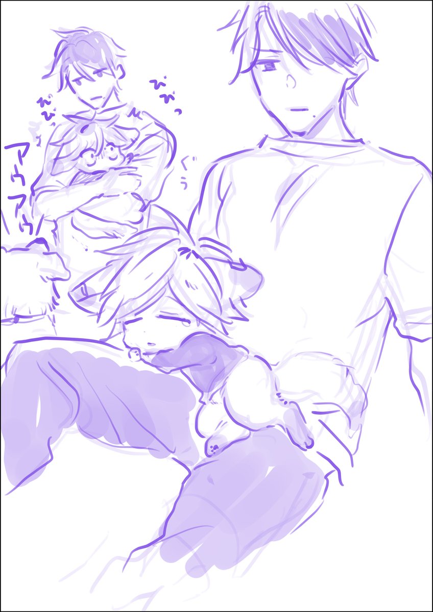 らくがき康介勢多川 途中で洗い物サボり始めて後頭部を吸い始め洗い物監督に怒られる(81話のやつ) #今日の大柴家