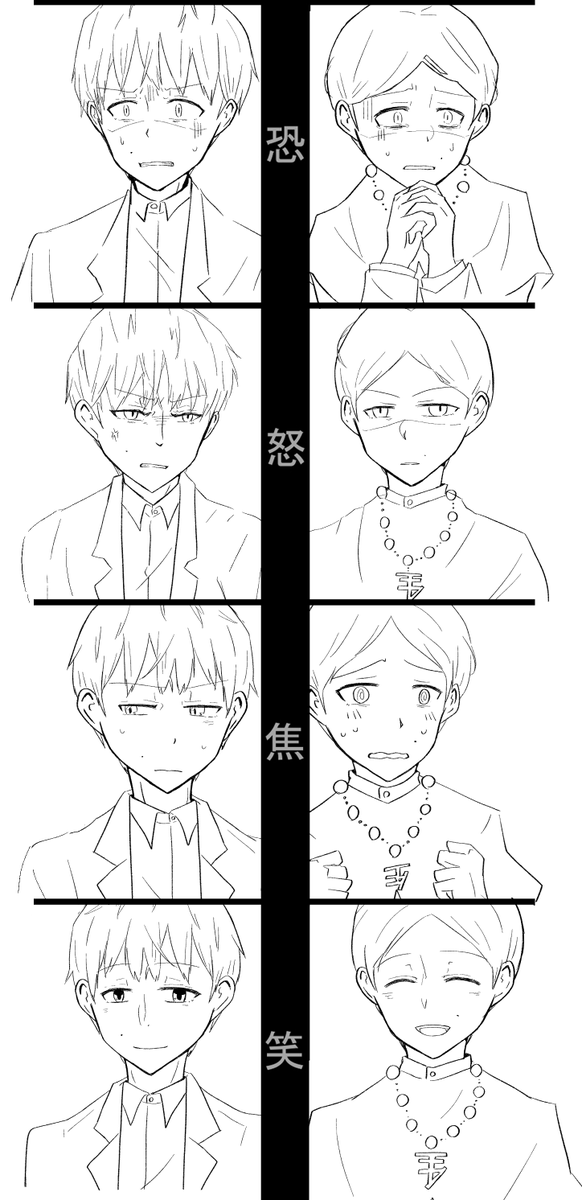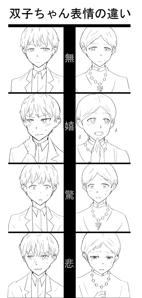 イメレスお借りして吉村双子表情練習。解釈より好みに振っています。 まきのんの「怒」を泣きながら怒らせるか静かに怒らせるか最後まで悩んだ。 双子ちゃん表情変化 pixiv.net/artworks/35208…