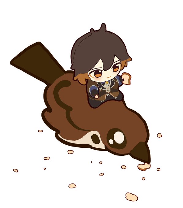 スズメにパンをあげるぬい鍾離先生🍞