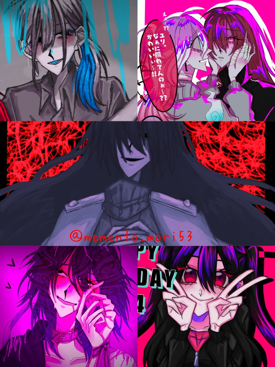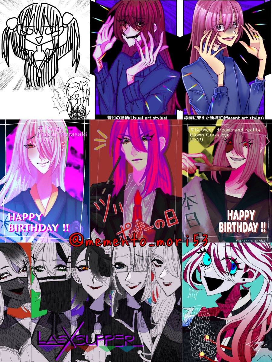 実は昨日は夢現組の使傘の誕生日だったんですよね さっき気づいたからちゃちゃっと描いたrkgk 遅れたケドHPB。お前ら(夢現組)も3年経ったんだな つか百々夜以外覚えられねーんだよ誕生日!笑 #創作