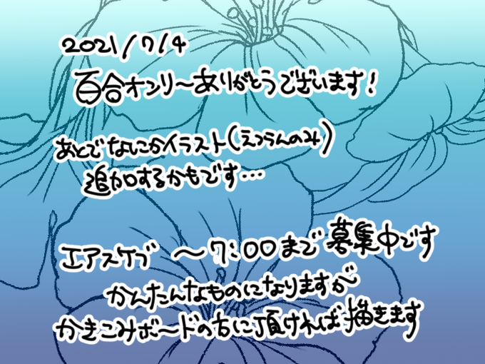 5 26 #大規模百合侵攻 エアスケブのリクエストありがとうございました🌷書き込みボードにもメッセージ沢山ありがとうございます!第二次あればまたよろしくお願いいたします💘 21/07/04 20:27
