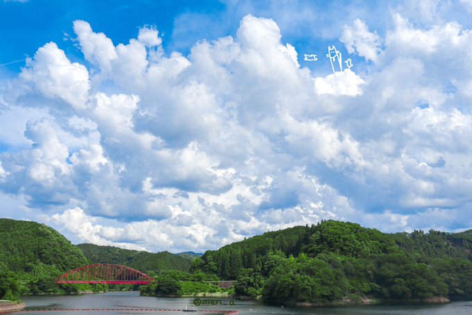 0 4 夏空𓈒 ✽˚✧₊⁎ #ねこ #青空 #空 #青蓮寺ダム #イラスト 22/06/27 18:03