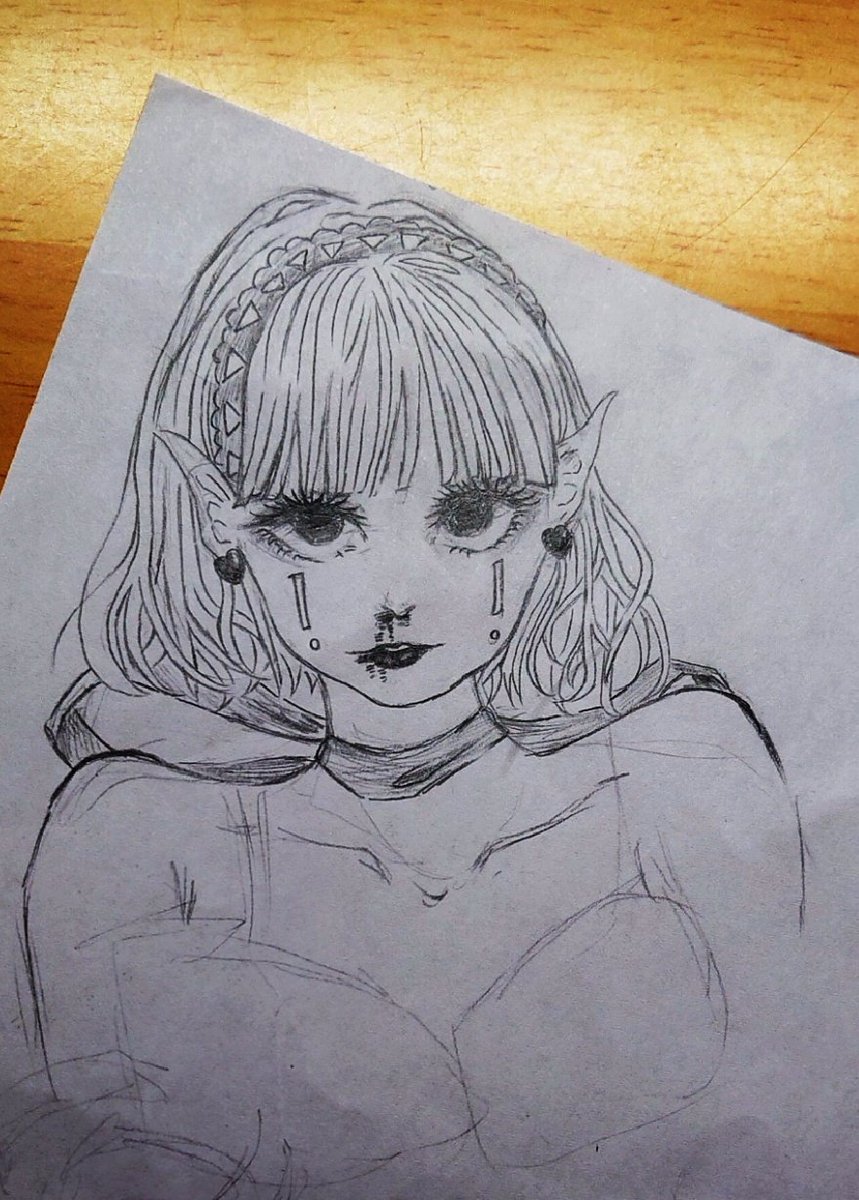 最近自分の描きたい絵描けなくてつらみざわ🥺 課題に追われて大変だ~ ε=ε=ε=┌( ˙-˙ )┘ 落書きの子だけど可愛いから載せとこ〜(ノ・o・)ノぽいっ #オリキャラ #アナログイラスト #落書き好きさんと繋がりたい