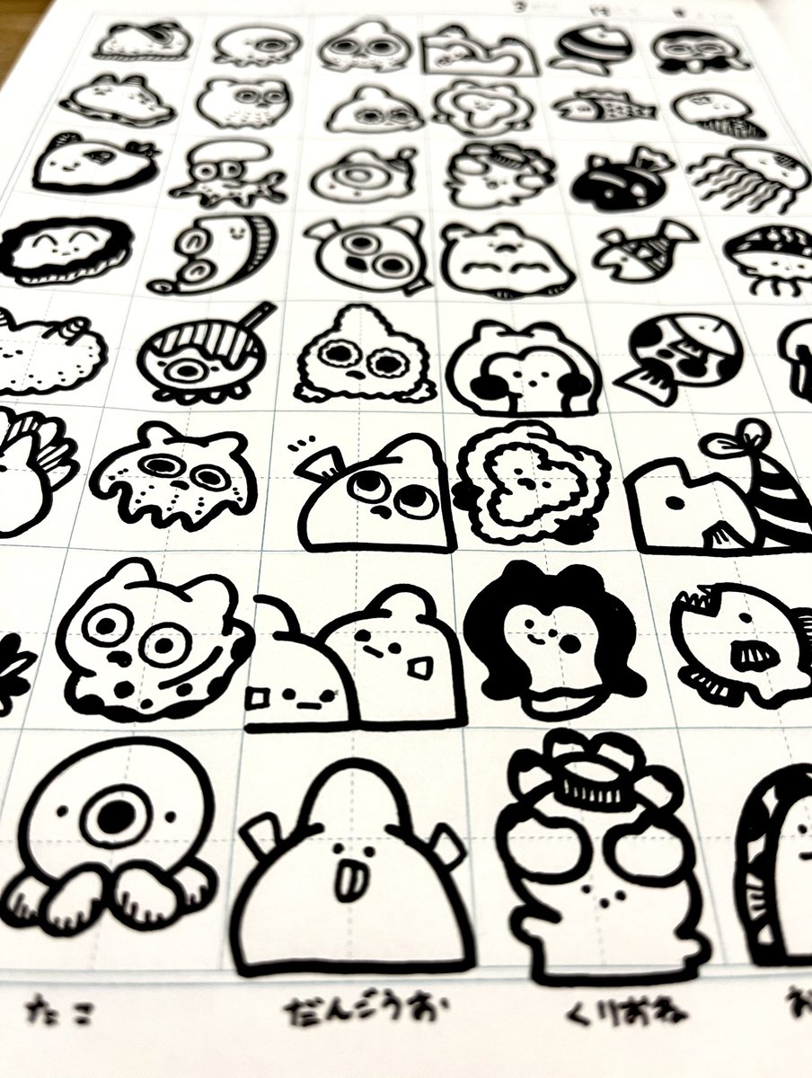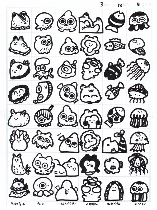 100均でお迎えしたステディ学習帳の国語のノート(8マス)の1マスのお部屋に海に住む生き物たちを住まわせました🏖🐠【一発描きです❕】 《こくご8マス・POSCA細・極細》 #絵描きさんと繋がりたい #イラスト好きな人と繋がりたい #絵柄が好みって人にフォローされたい #創作クラスタさんと繋がりたい