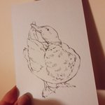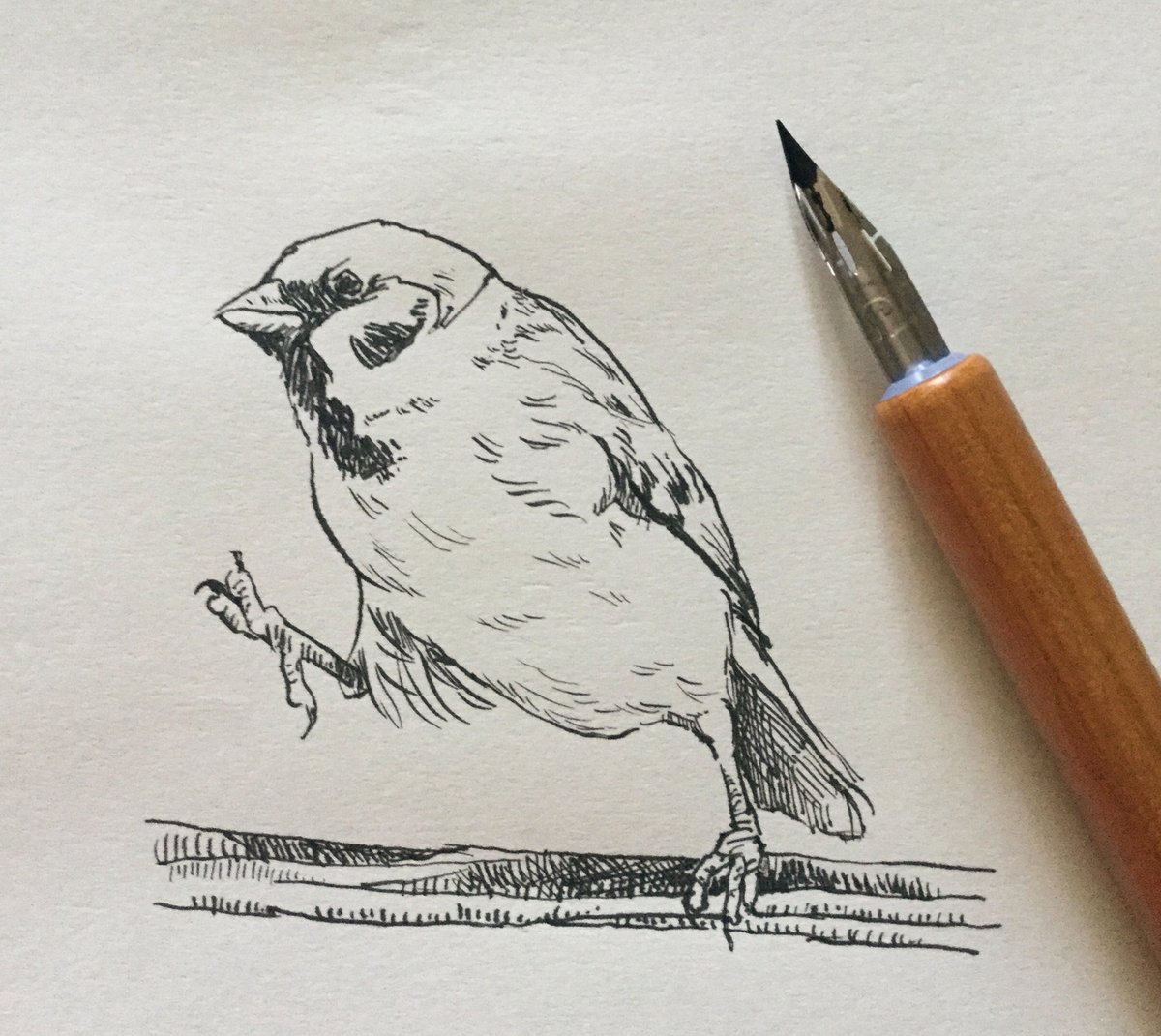 付けペン買ってきました、試し書きはもちろん、スズメちゃん。 #ペン画