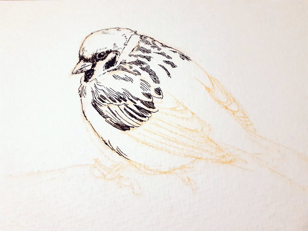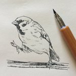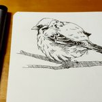 2 27 付けペン買ってきました、試し書きはもちろん、スズメちゃん。 #ペン画 21/07/28 14:51