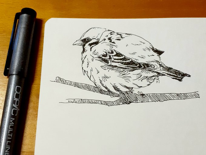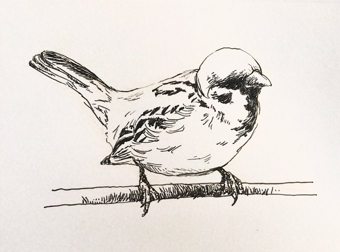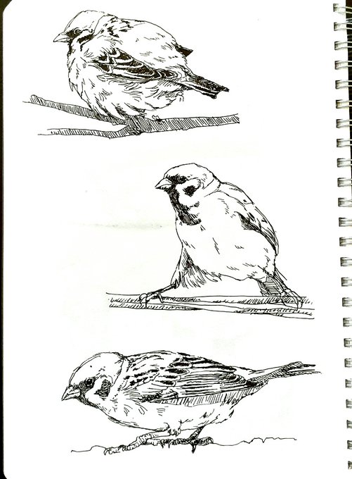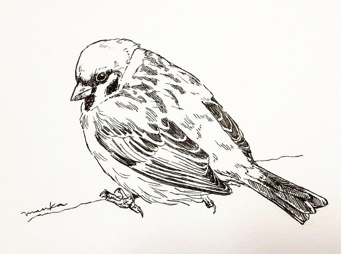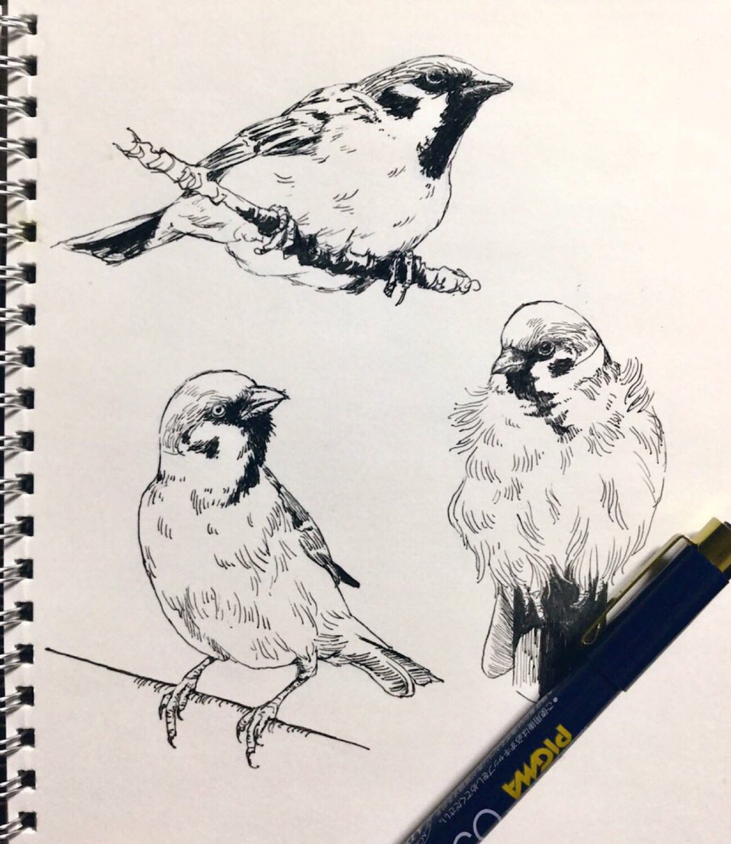 すずめちゃん。いろいろ描き方を変えてみた。 #日々描く #ペン画