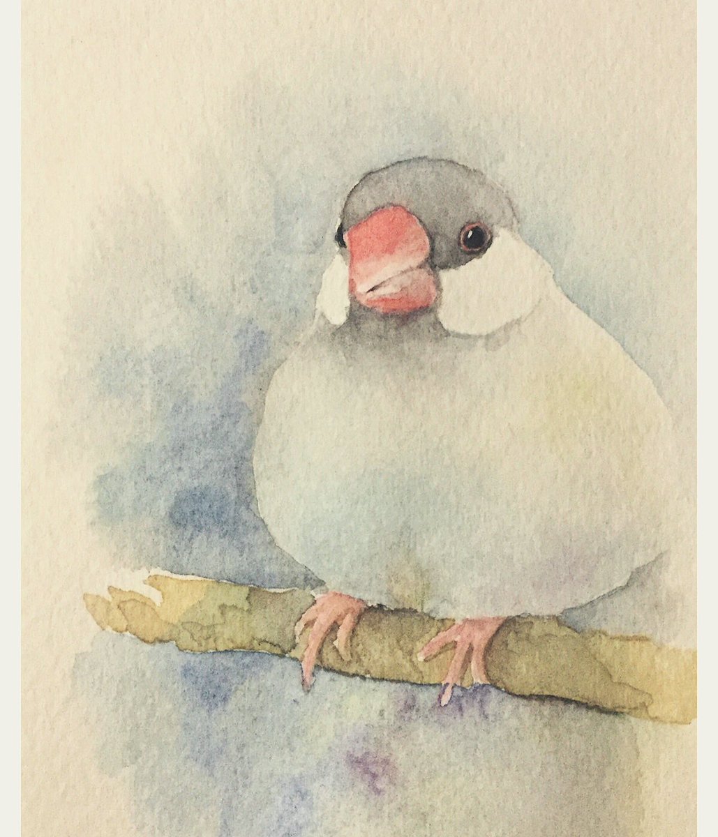 4 24 水彩、久しぶりすぎて難しい。塗り方を忘れている。 #文鳥 #水彩 21/08/19 18:10