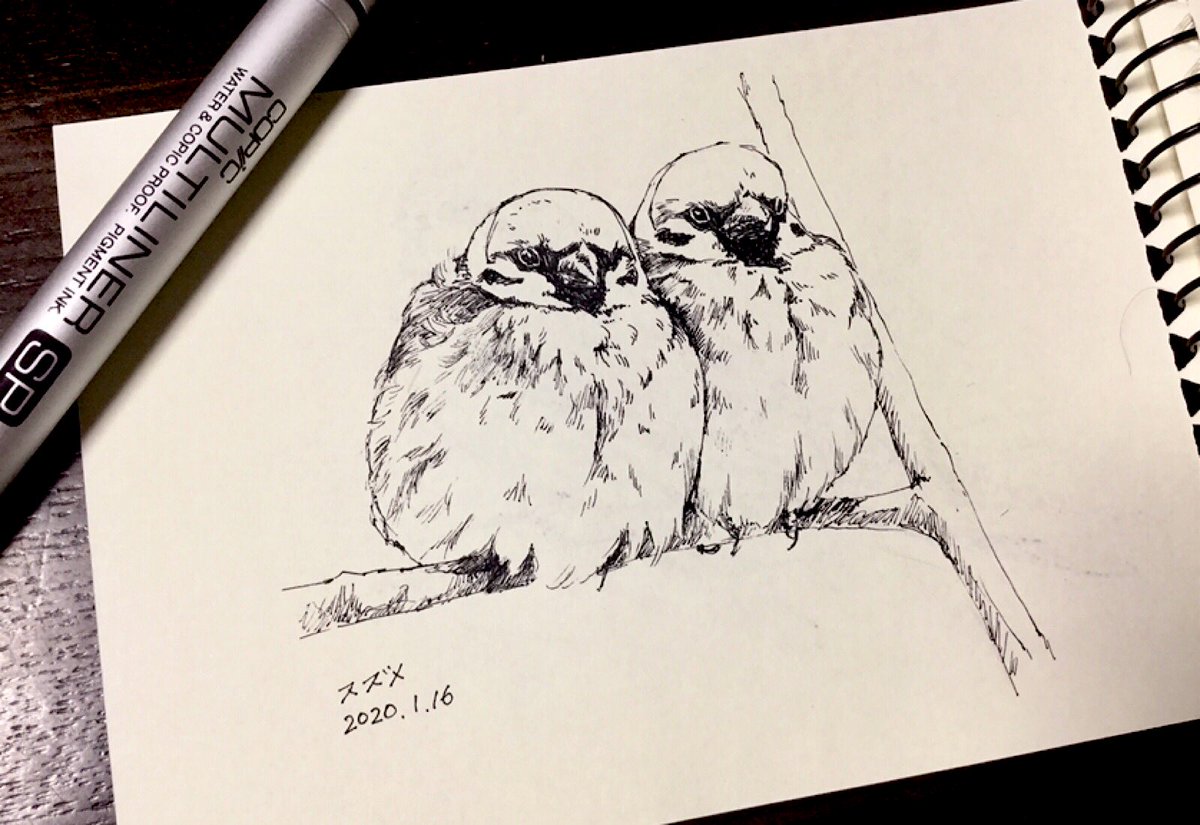 すずめちゃん #鳥ちゃん #日々描く #ペン画