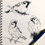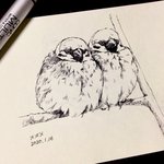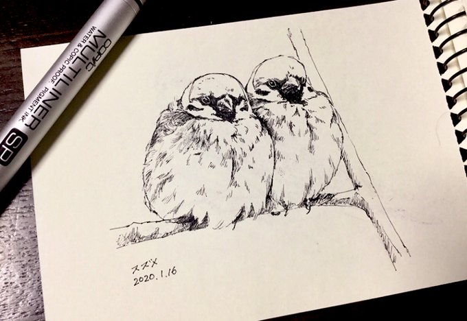 0 15 すずめちゃん。いろいろ描き方を変えてみた。 #日々描く #ペン画 21/04/14 20:14