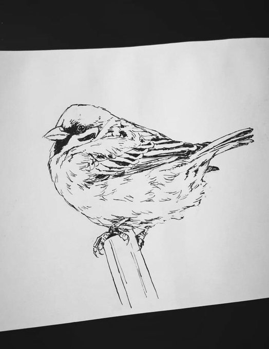 スズメちゃん。 描けなくて難産。 #すずめ #ペン画