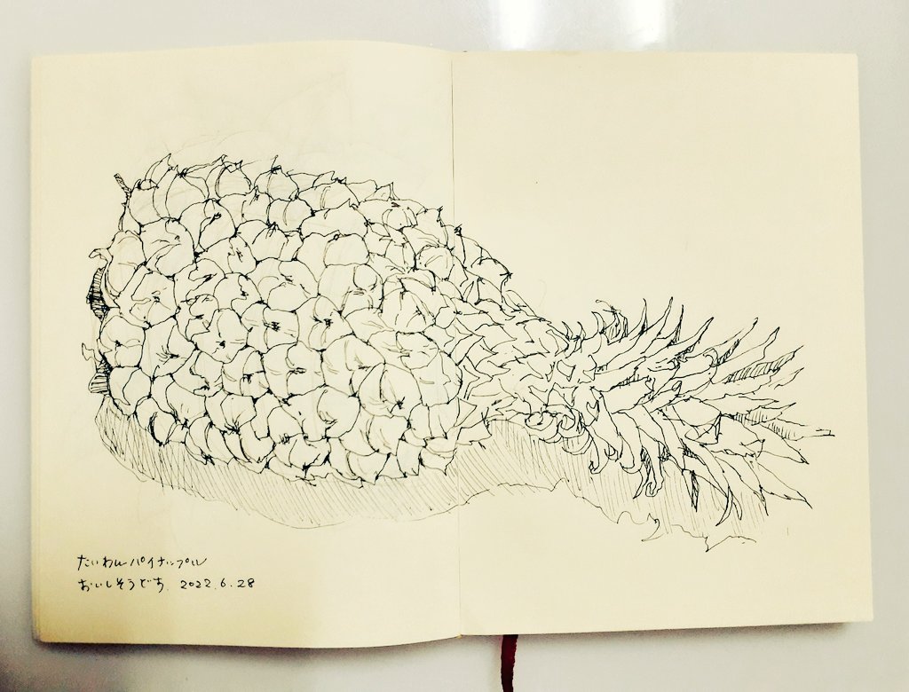 一発書きじゃないと絶対飽きちゃうモノ。 台湾パイナップル。 #ペン画