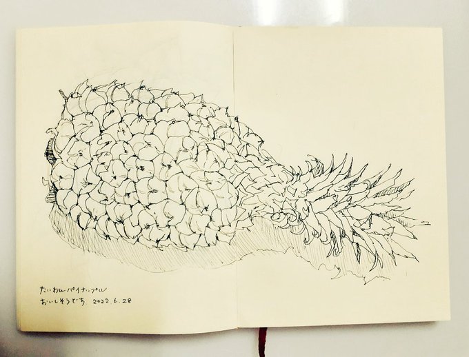 1 8 一発書きじゃないと絶対飽きちゃうモノ。 台湾パイナップル。 #ペン画 22/06/28 19:23