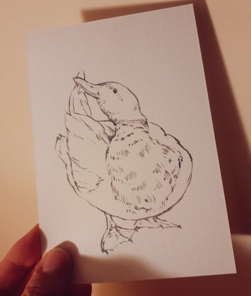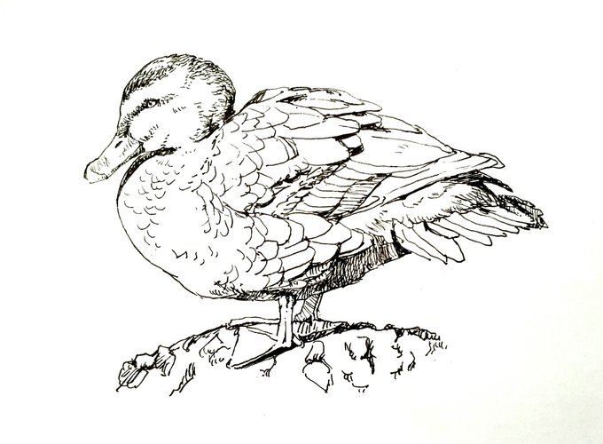 カモのお尻かわゆい。 #カルガモ #ペン画