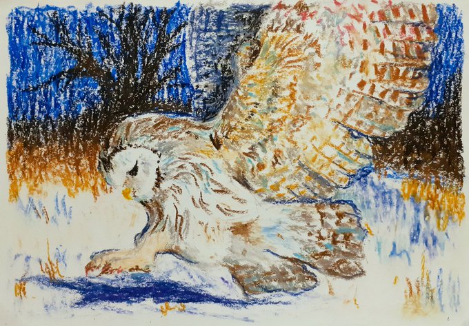 3 19 アオサギ。 サギは魚をとる時に、水面の光の屈折も考慮して魚を狙ってるそうですね。 何度も失敗して磨かれて、熟練ハンターになるのかな。 #鳥 #イラスト 22/11/03 22:18