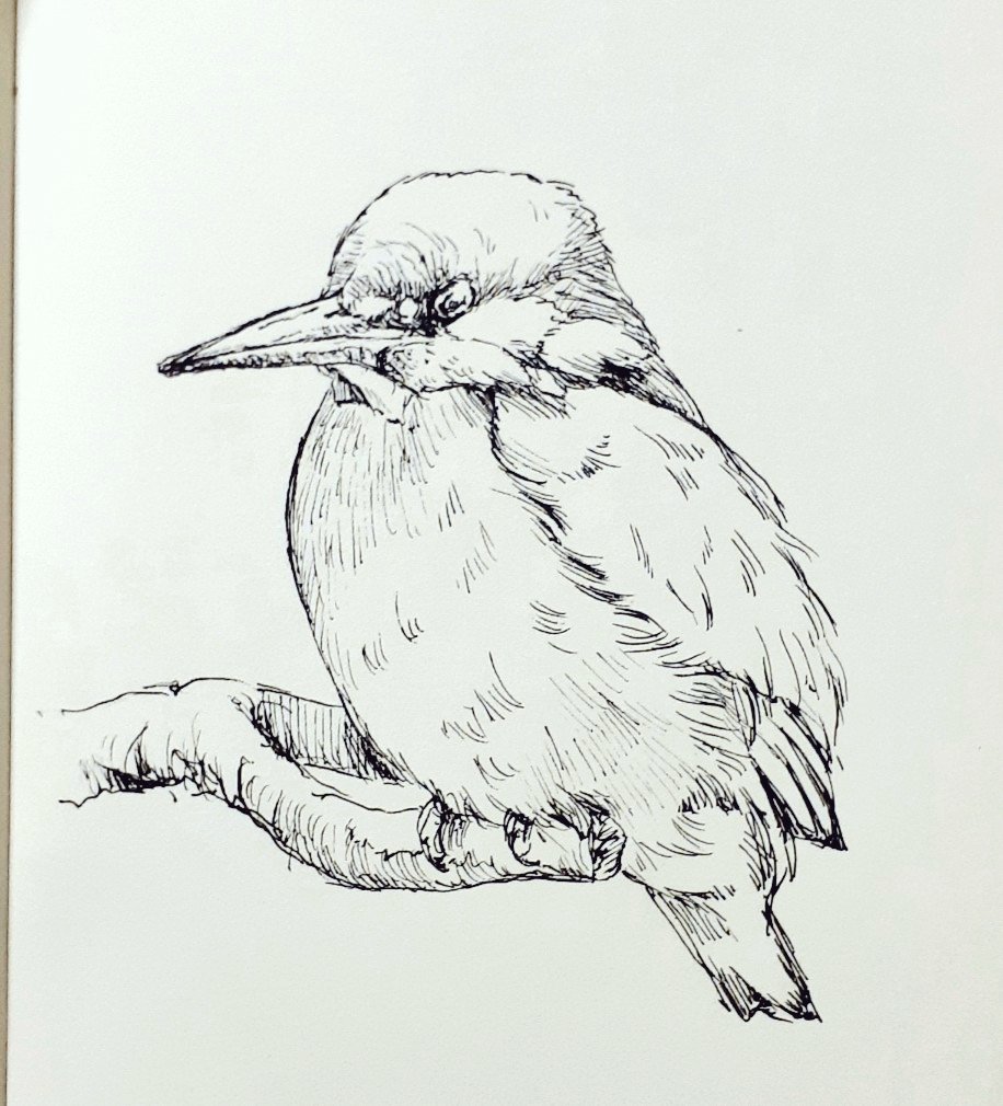 0 12 散歩してると雀ちゃんがやってきて 近付くと飛んで離れて、、 また近付いてくると飛んで離れて、、 という遊び?かな?を何度もやってる #ペン画 22/09/11 22:24