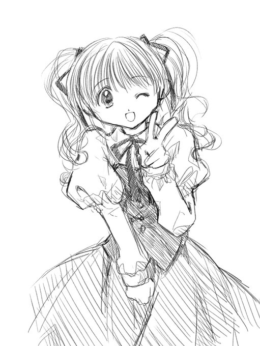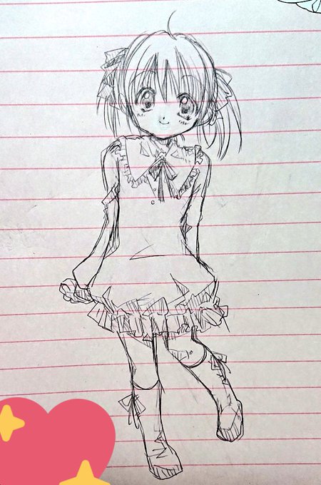 昨日と同じく「可愛い服」で検索して雰囲気似せた。ゴスロリっぽい服が好きかも。でも上手く描けない。 #落書き