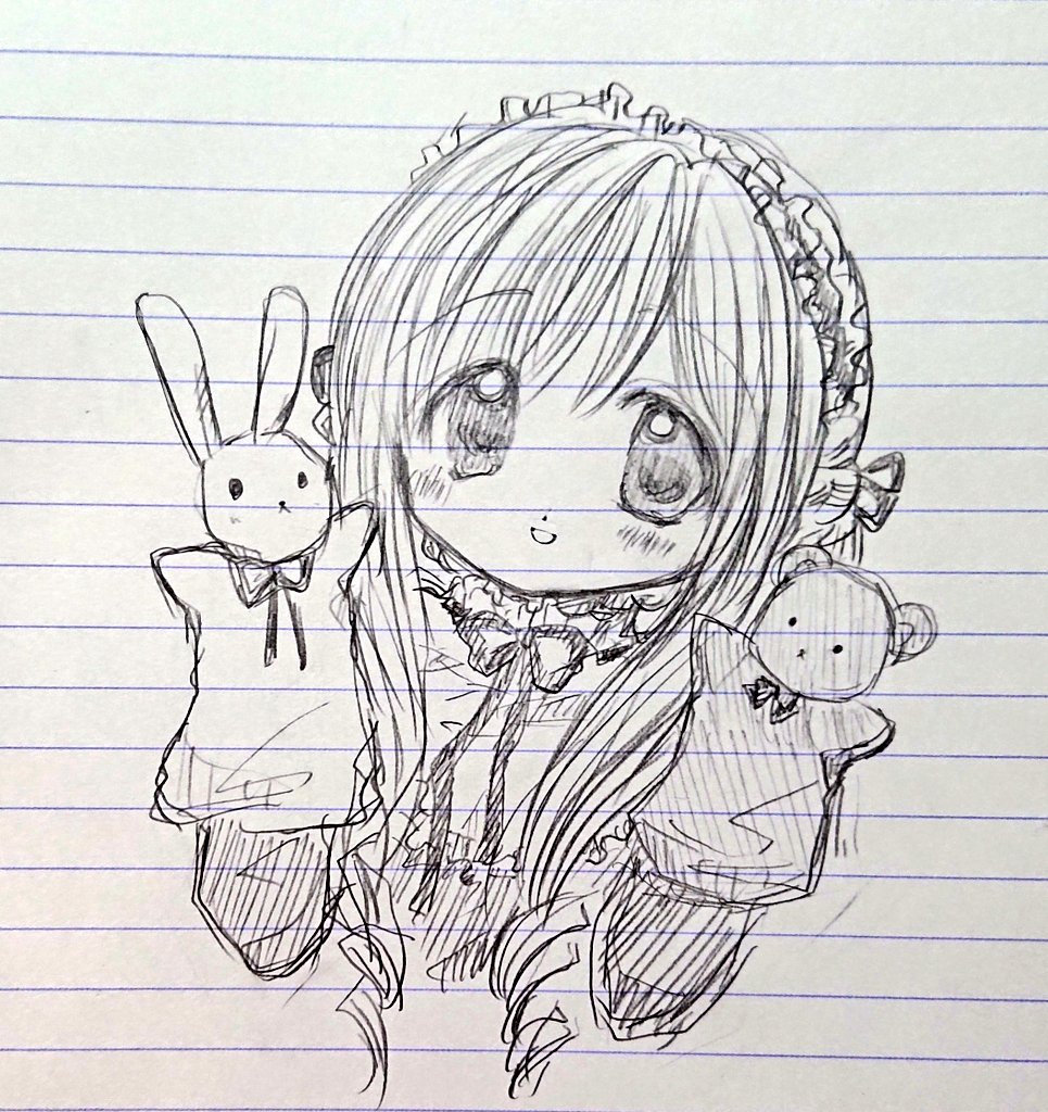亞里亞。友達からリクエストもらって(ありがとぅ!)から、お菓子持たせるか?とかいろいろ考えて、結局パペット?持たせてみた。 #シスプリ #落書き