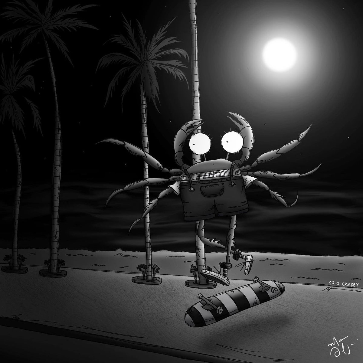 Día 10: Mi hermano a veces me dice Cangre Marianne, así que me dibujé skateboardeando (no se skateboardear) pero me gustaría saber jajaj, tengo mucho sueño, bye @inktober #inktober #inktober2022 #crabby #inktobercrabby #inktober2022crabby #drawingchallenge #inktobermexico